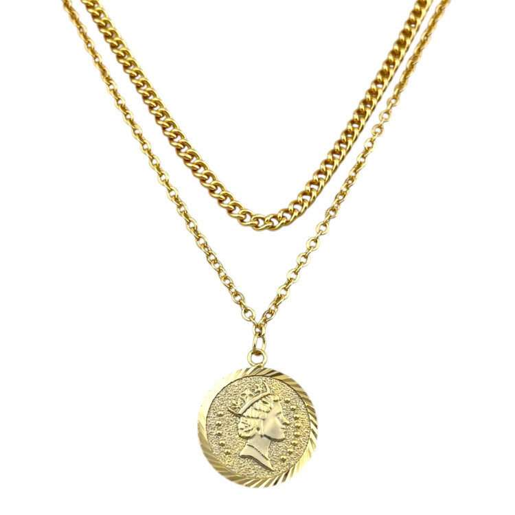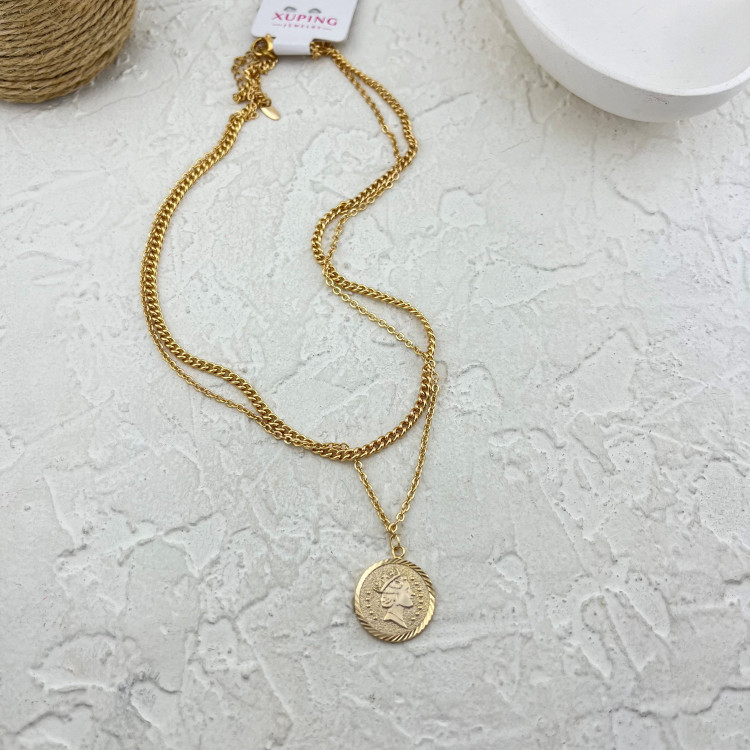 گردنبند زنانه طرح طلا ژوپینگ مدل سکه دو لاین کد N014