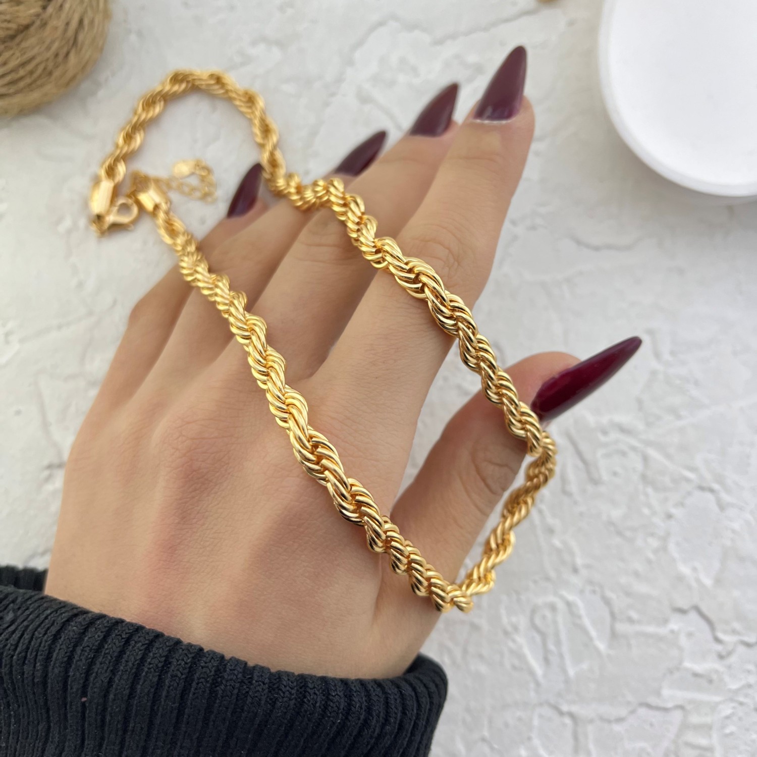 45 سانتیمتر زنجیر و پهنا حدود 8 میلیمتر و دستبند 19 سانتیمتر در 8 میلیمتر و گوشواره حدود 5 سانتیمتر در 8 میلیمتر / رنگ ثابت و ضد حساسیت