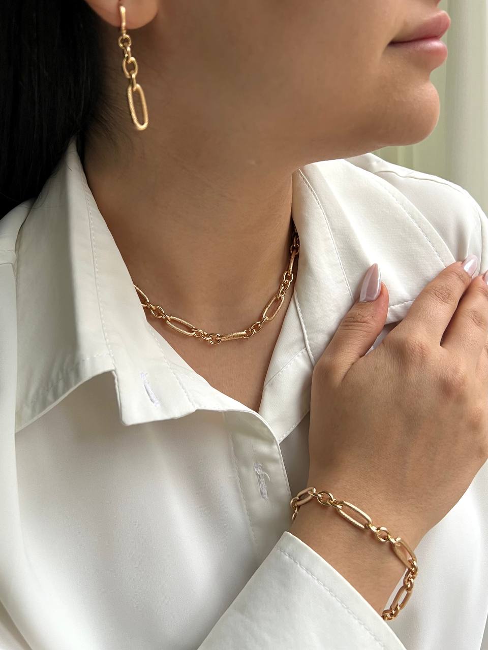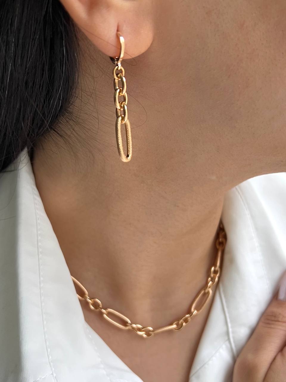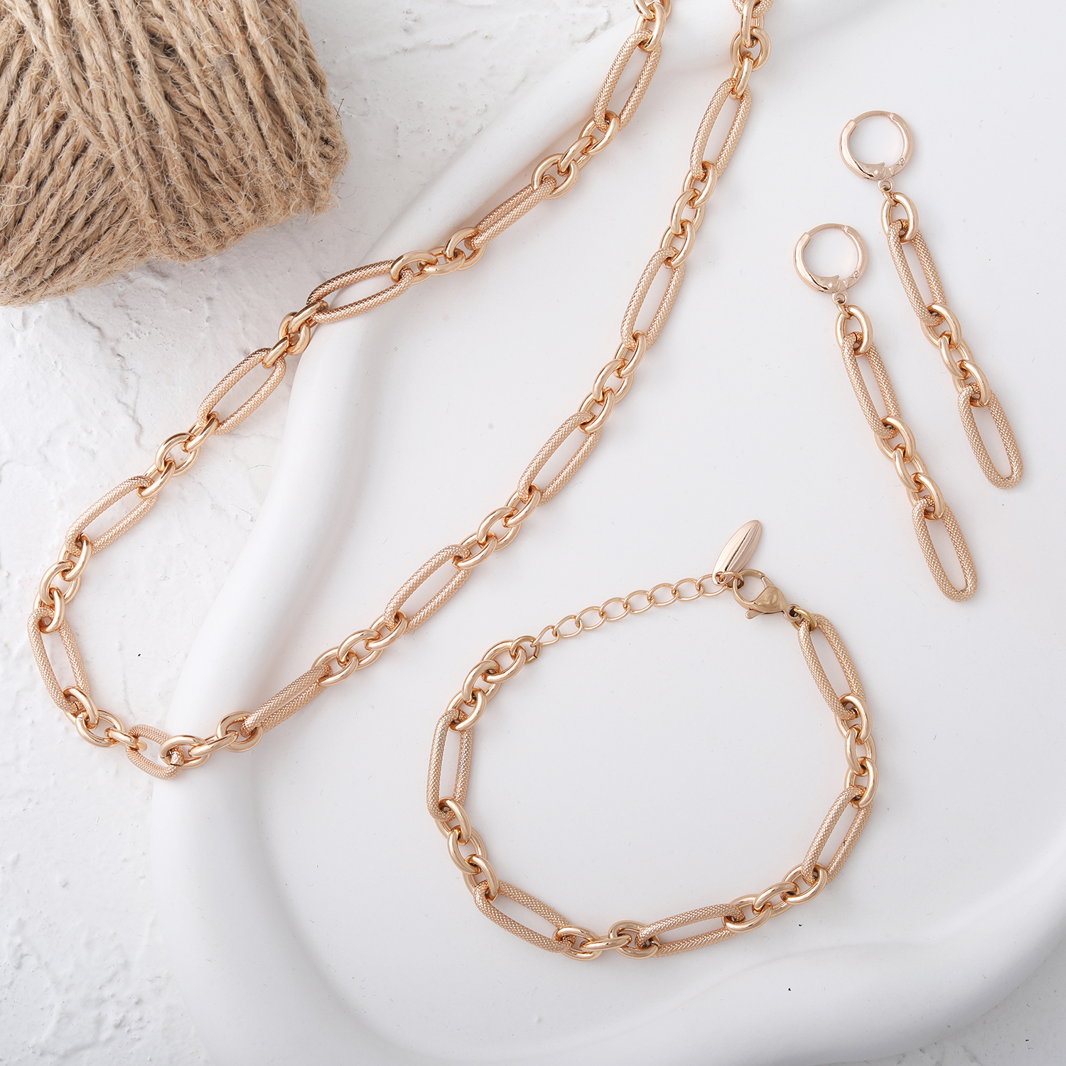 رنگ ثابت و ضد حساسیت ابعاد :گردنبند:45 سانتی متر گوشواره: 4 سانتی متر دستبند : 19 سانتی متر و 5زنجیر تغییر سایز