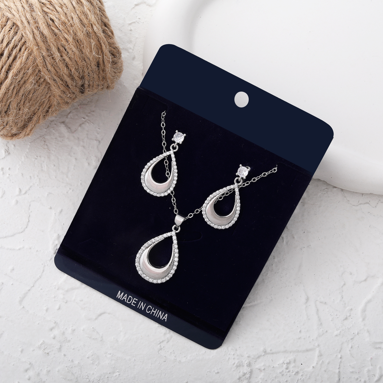 رنگ ثابت و ضد حساسیت ابعاد :پلاک:3*2سانتی متر گوشواره:3*2سانتی متر زنجیر:45 سانتی متر