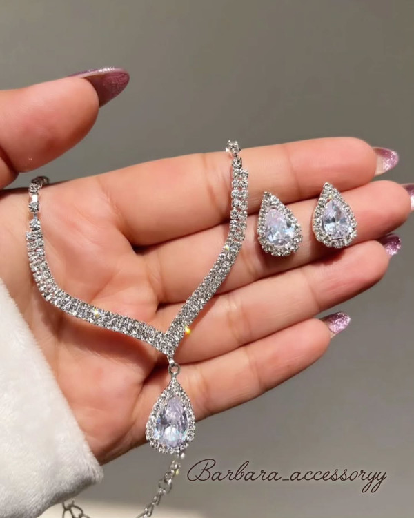 بسیار شیک و ضد حساسیت با آبکاری نقره. مناسب برای مجلسی و عروسی. بدون ریزش نگین.